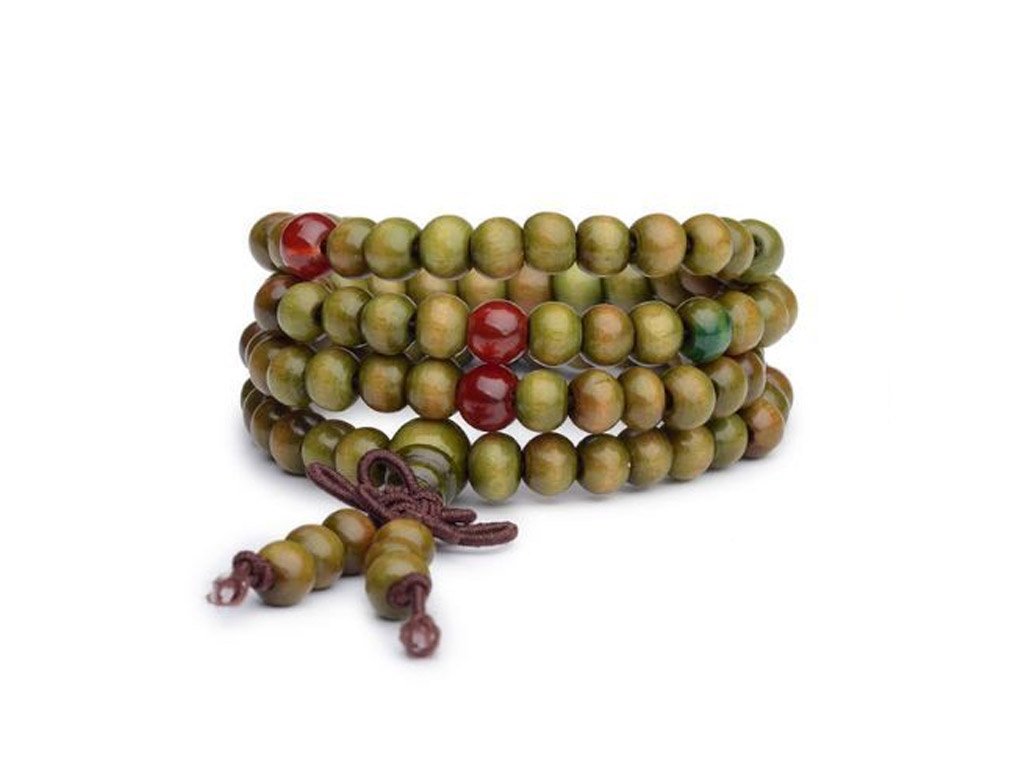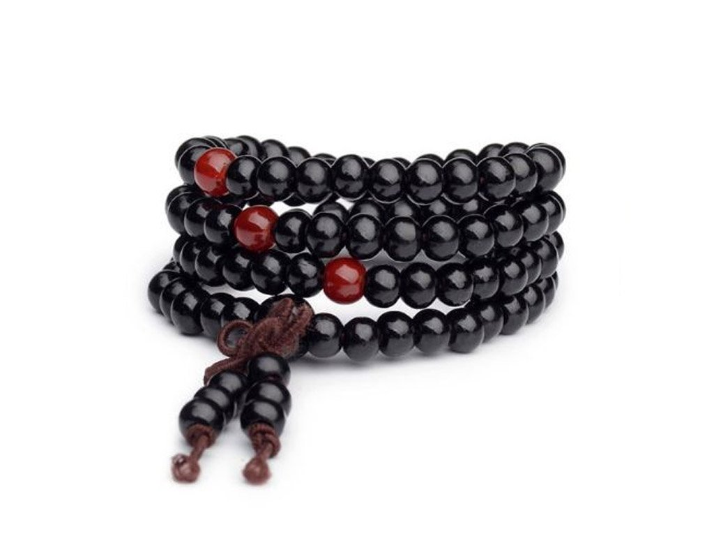 The meditation Buddhist bracelet signifies mental harmony. It is lightweight, made up of 108 beads, and strung on a strong elastic nylon. It can be worn by both men and women, during daily meditation as well as at social events as part of an outfit.
