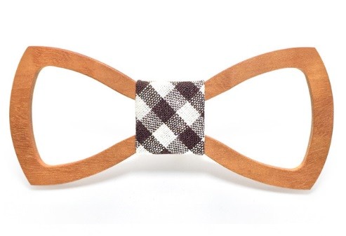 A combination of wood and fabric with a strap around the neck for easy wearing.