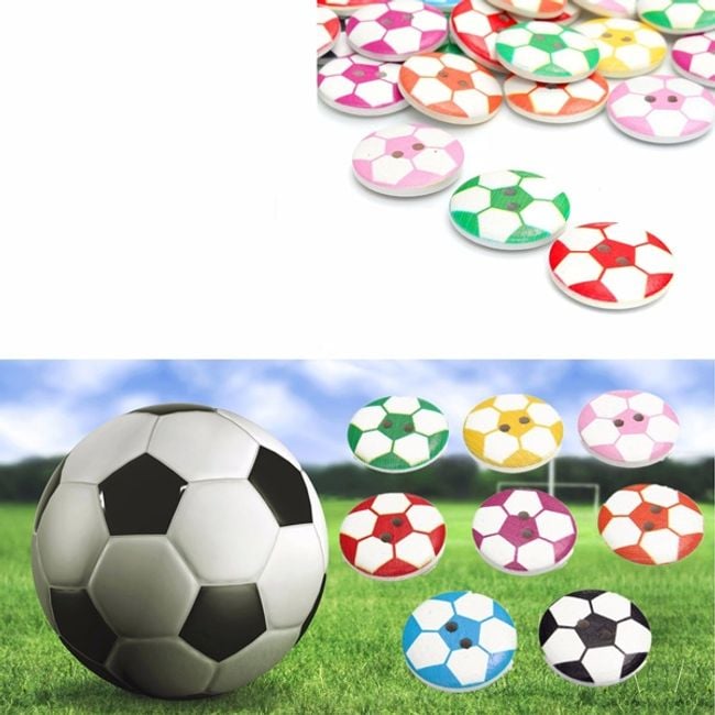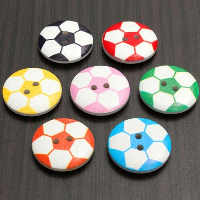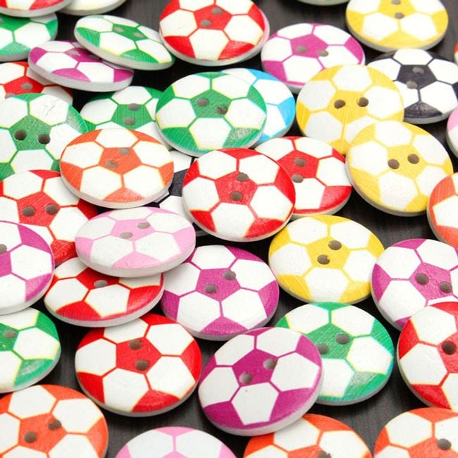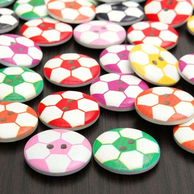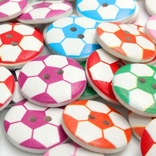 Wooden buttons in the design of a football are an excellent decorative tool that can help you cosy up a children's room. The package contains 50 pieces in various colours. You can also decorate the buttons with photo frames.