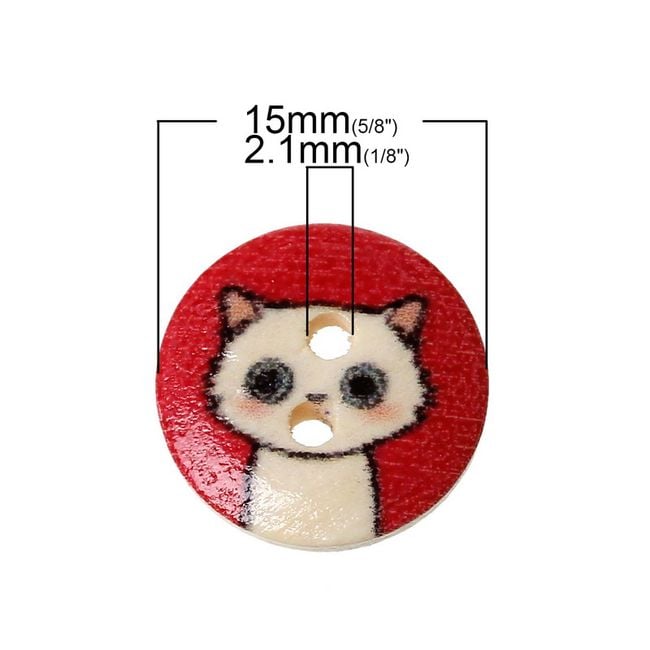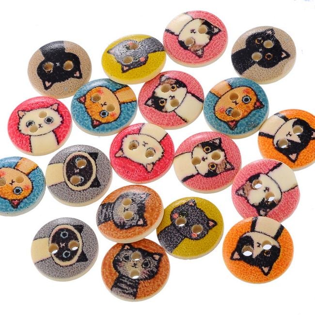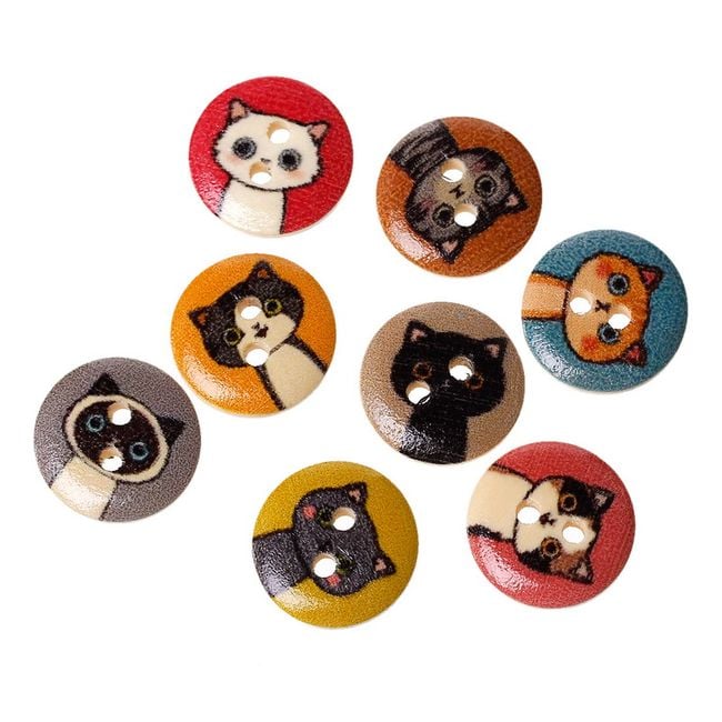 These cute buttons can be used for altering any clothing. They can also be used for various decorating purposes. Each button has two small holes for fastening. The cat motifs are very adorable. The package contains a total of 100 pieces.