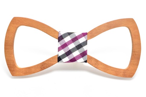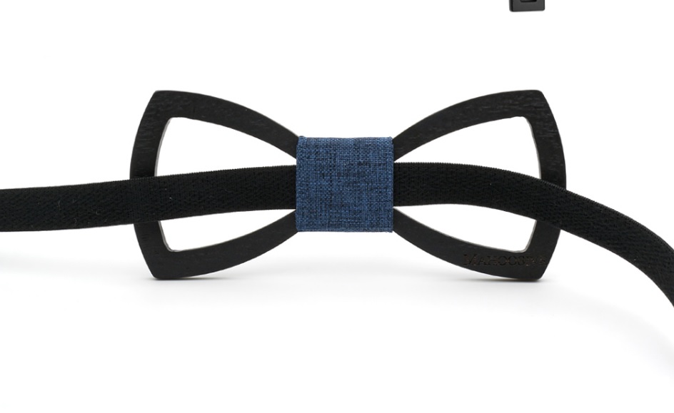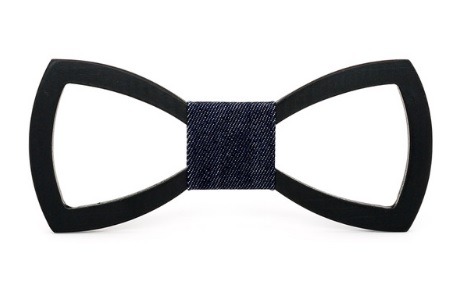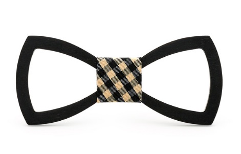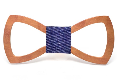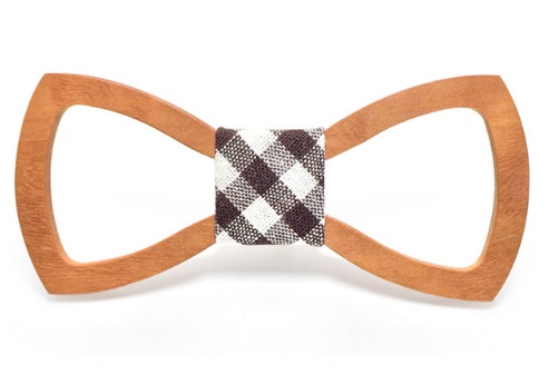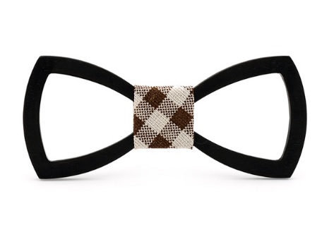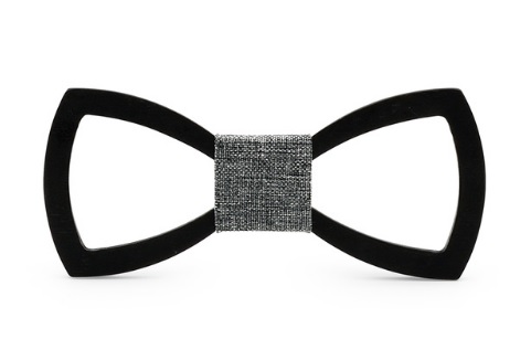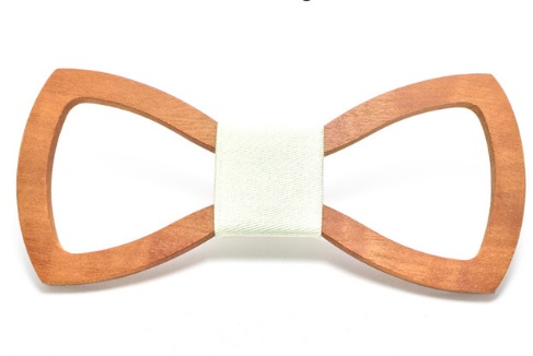 A carved wooden bow tie adds originality to your formal attire.