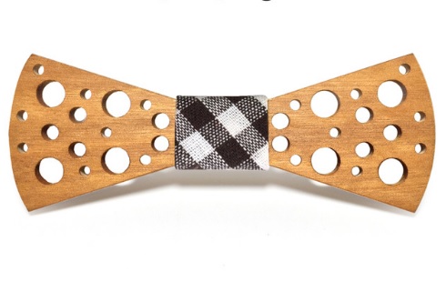 A wooden bow tie carved in light brown can be an everyday accessory for men.