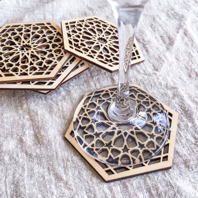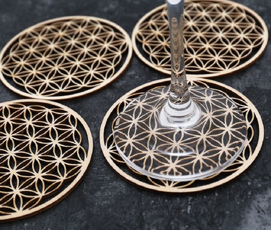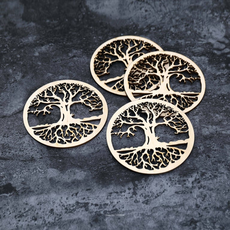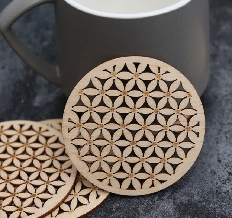 Wooden carved coasters 10 pcs