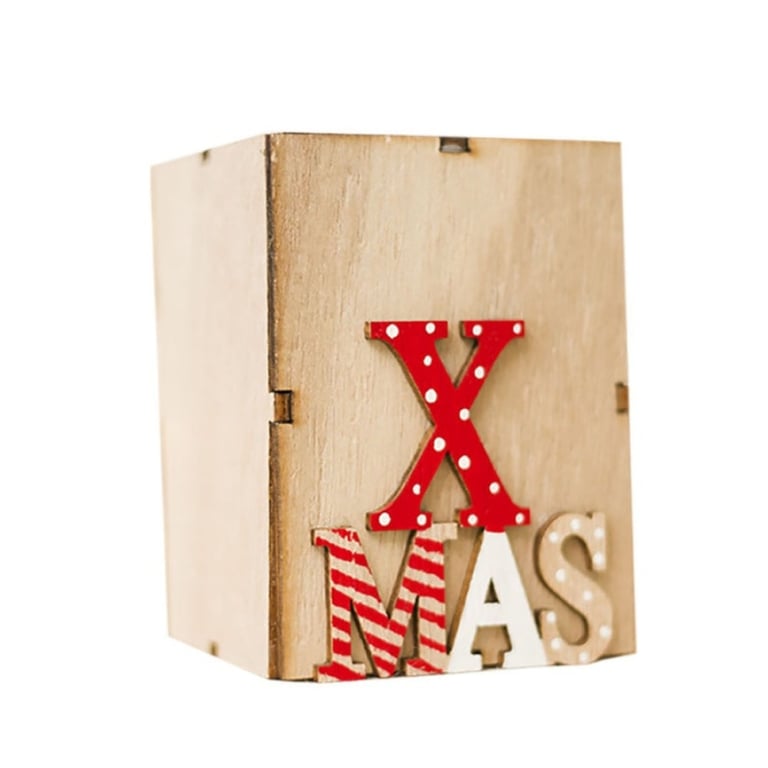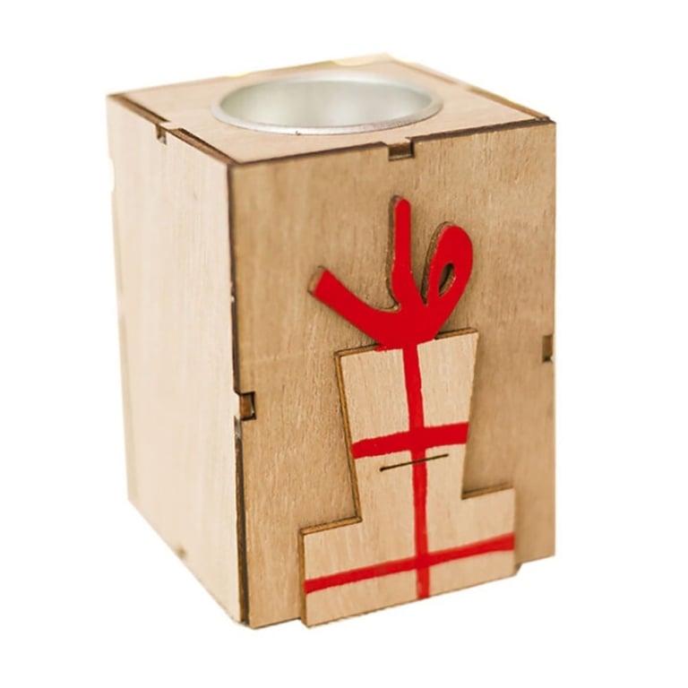 Wooden tea light holder with a Christmas theme.