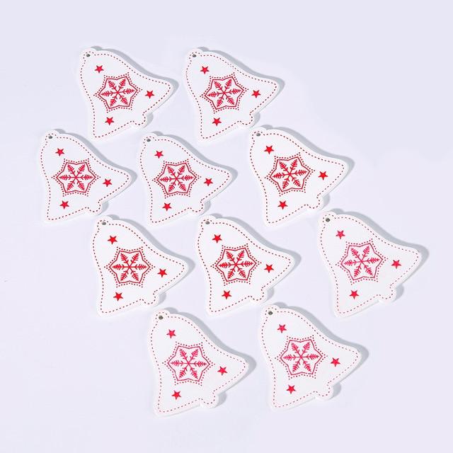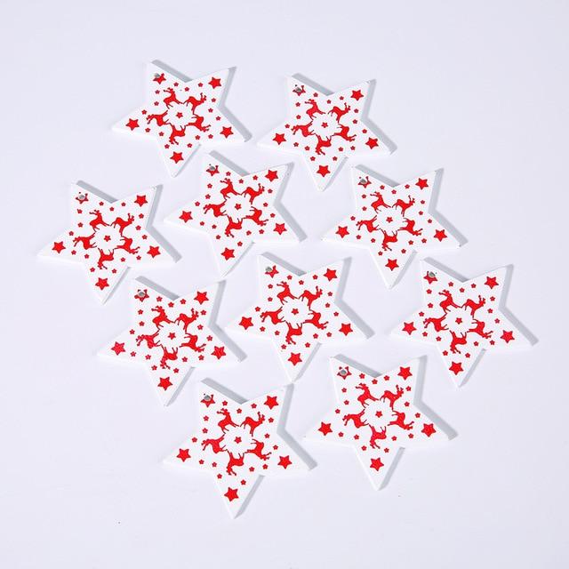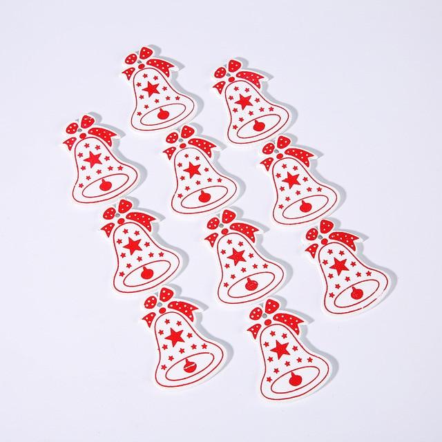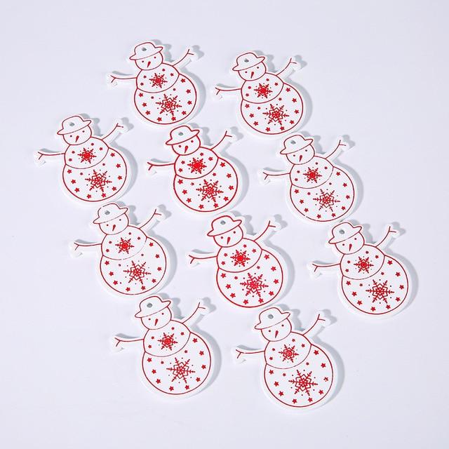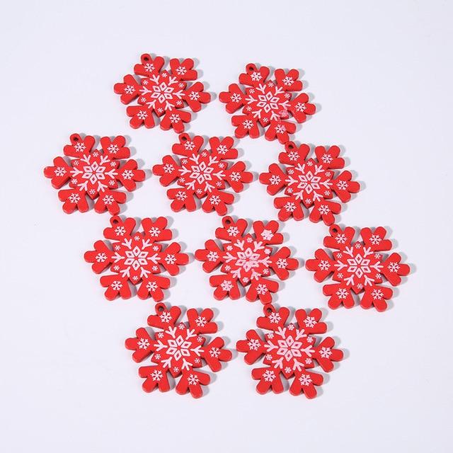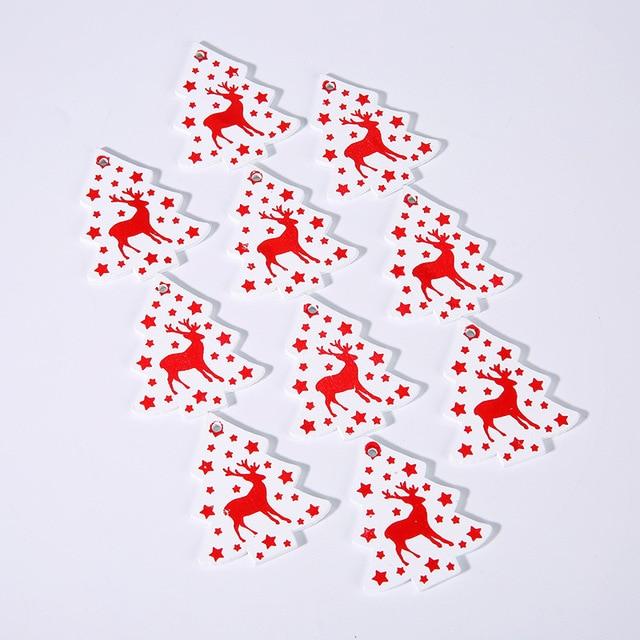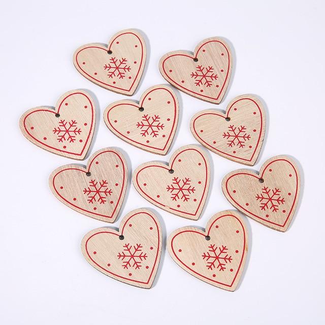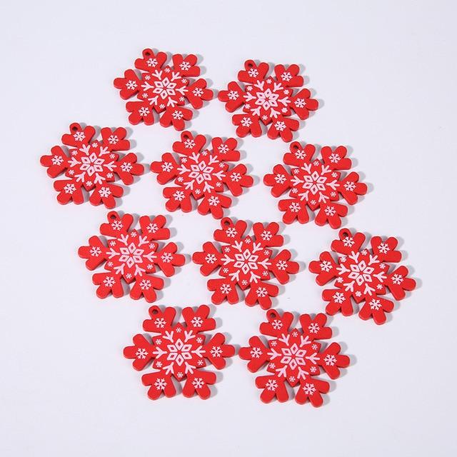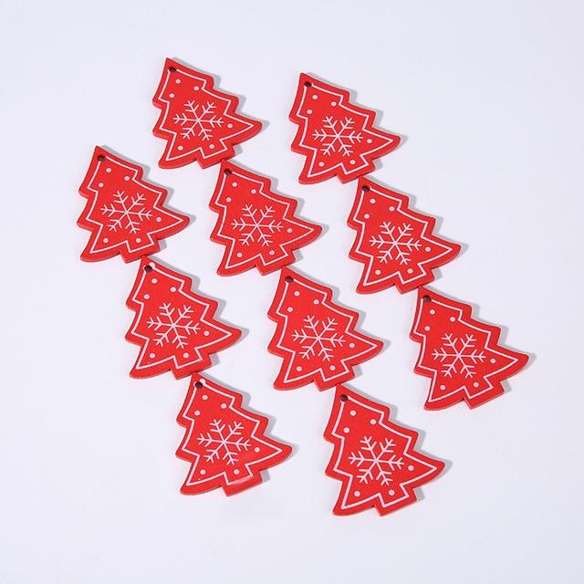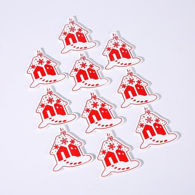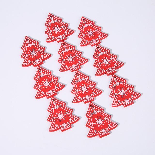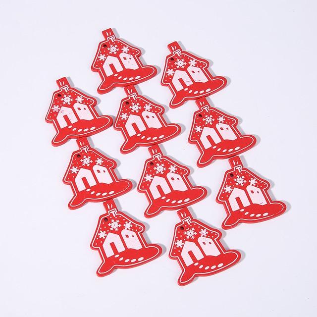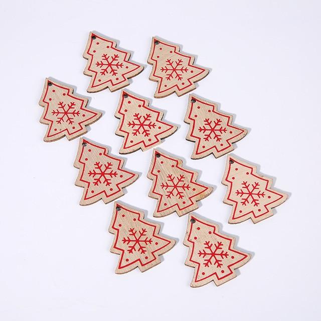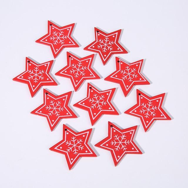 Wooden Christmas decorations in various shapes and colours. The set includes 10 pieces.