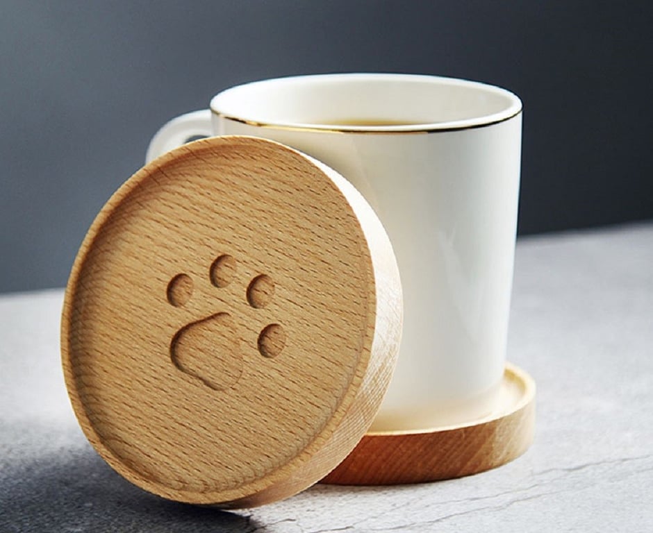Wooden Coaster with Paw Print