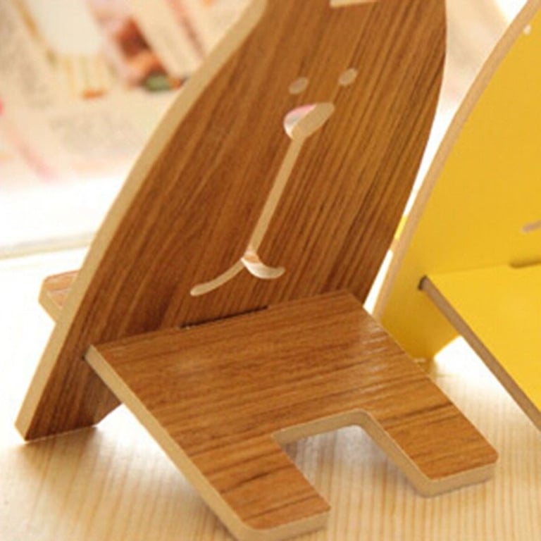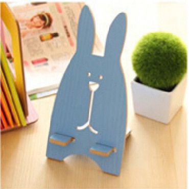Wooden cute stand in the shape of a bunny for a mobile phone.