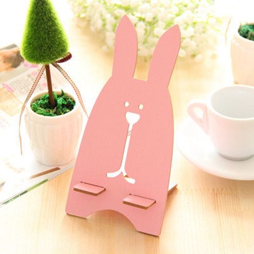 Wooden cute rabbit-shaped stand for mobile phones