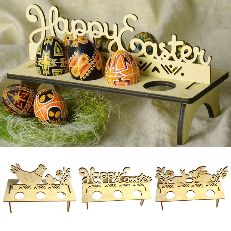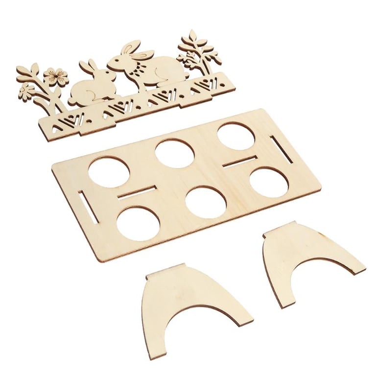 These wooden decorations are designed for placing Easter eggs.