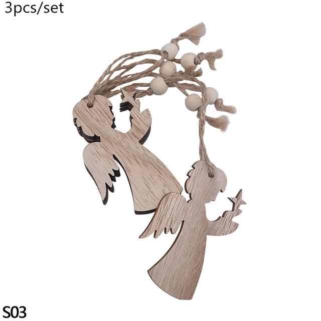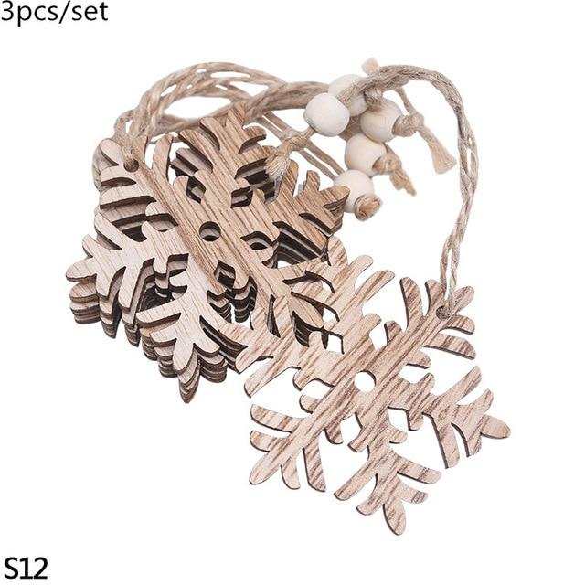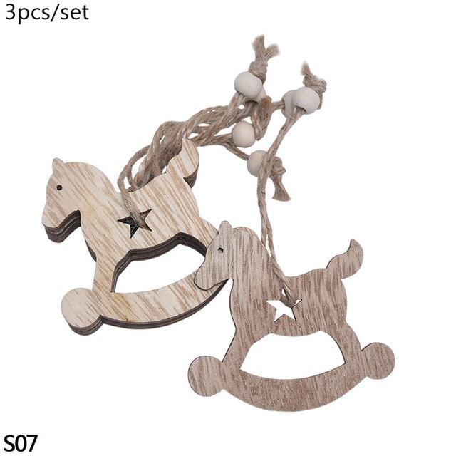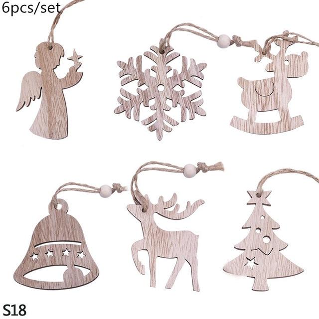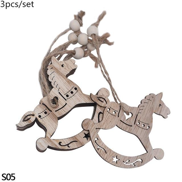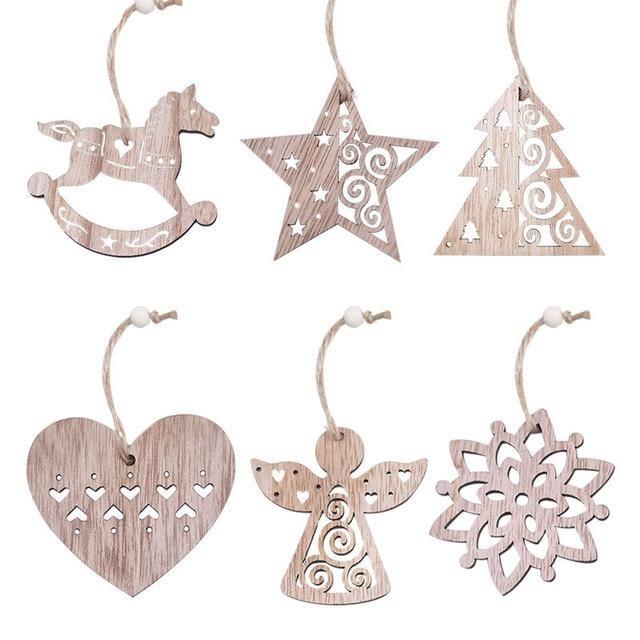 Wooden decorations for the tree in various shapes.