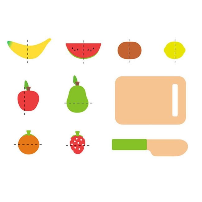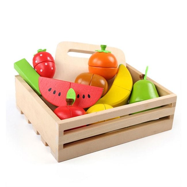The wooden fruit-shaped set will delight any little girl! The set also includes a chopping board and a wooden knife, as the fruit can be cut in half.