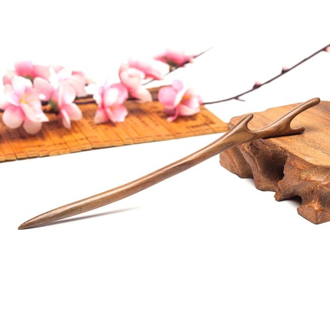 The stick is made of solid wood material and is suitable either as a support or as a decorative element for hair.