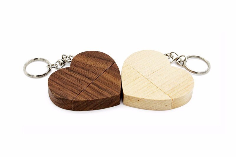 Wooden heart USB flash drive