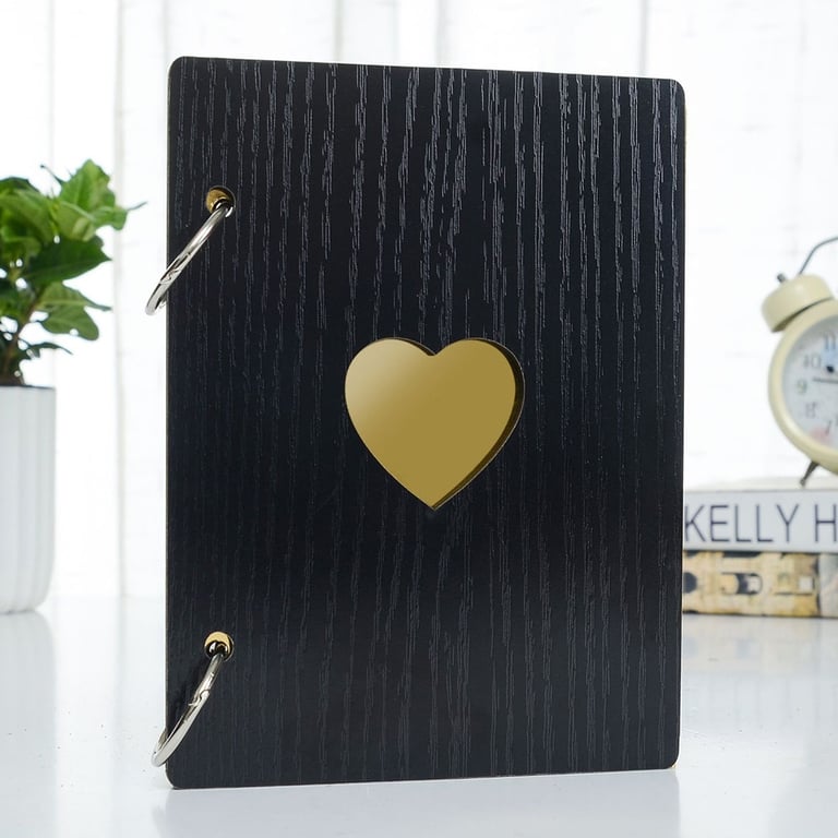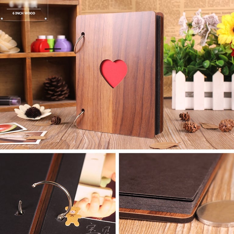 The creative photo album with wooden covers will keep your photographs and memories in one place.