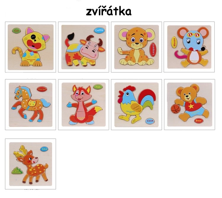 Each variant has a different number of pieces. The puzzles only develop the child's fine motor skills and logical thinking.
