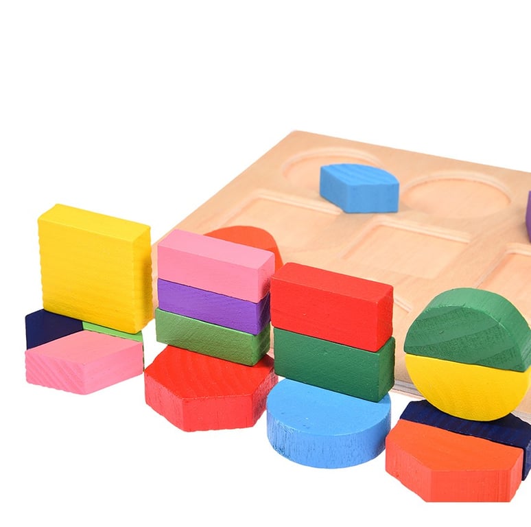 Thanks to this puzzle, your child learns to fit different shapes into cut-out holes. This helps your child practice logical thinking, knowledge of basic shapes, and fine motor skills.
