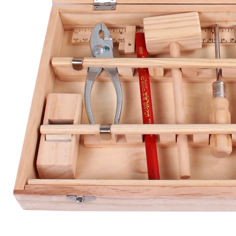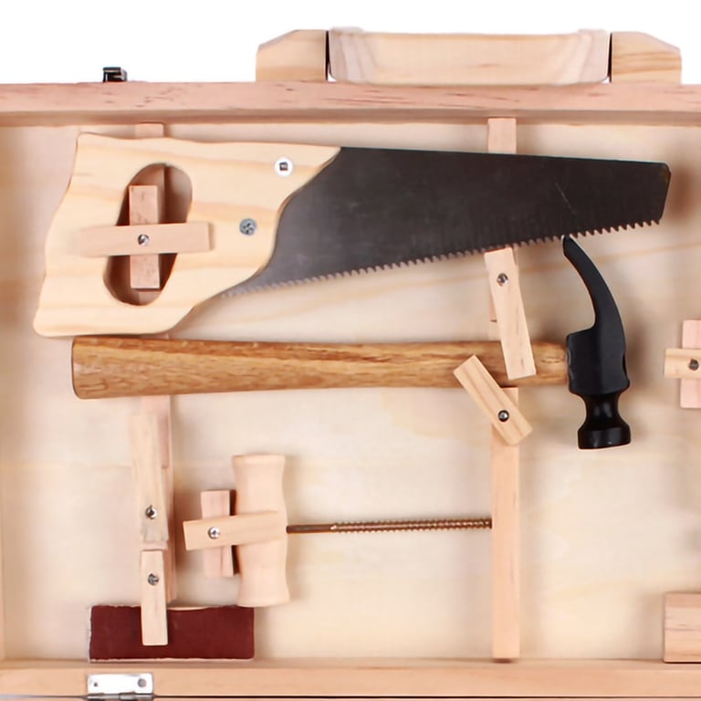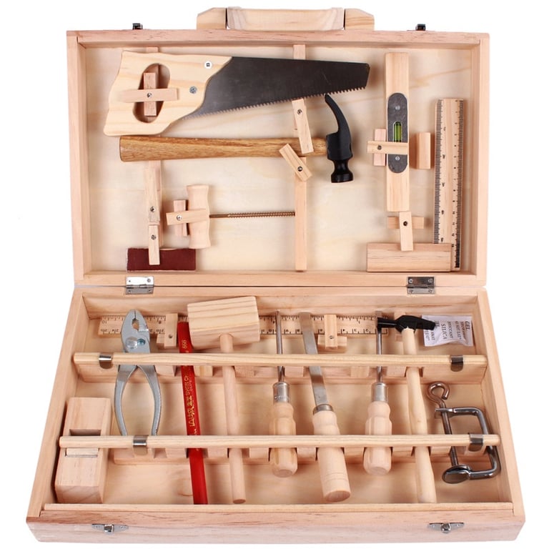 A beautiful wooden case for young DIY enthusiasts. It contains everything a young woodworker needs to utilise their skills with this wooden tool set.