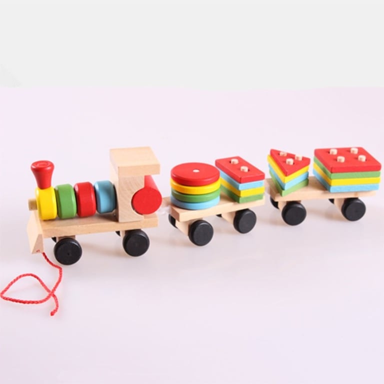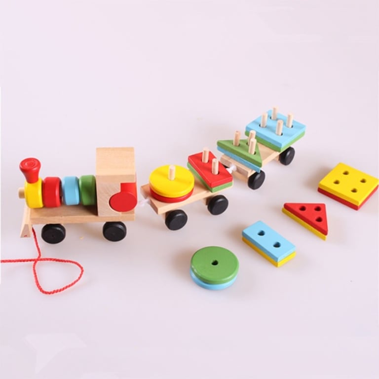 Wooden train with geometric shapes