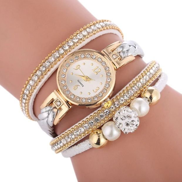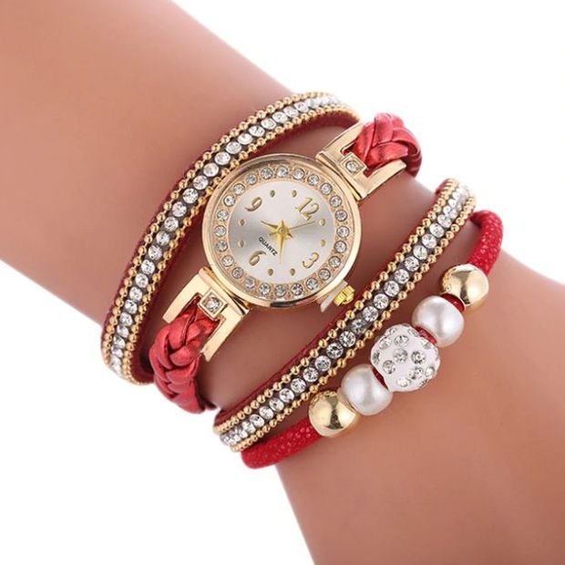 Beautifully decorated woven watches with beads. Let your wrist stand out with these embellished watches. Choose from many colour variations. An ideal gift for women and girls.