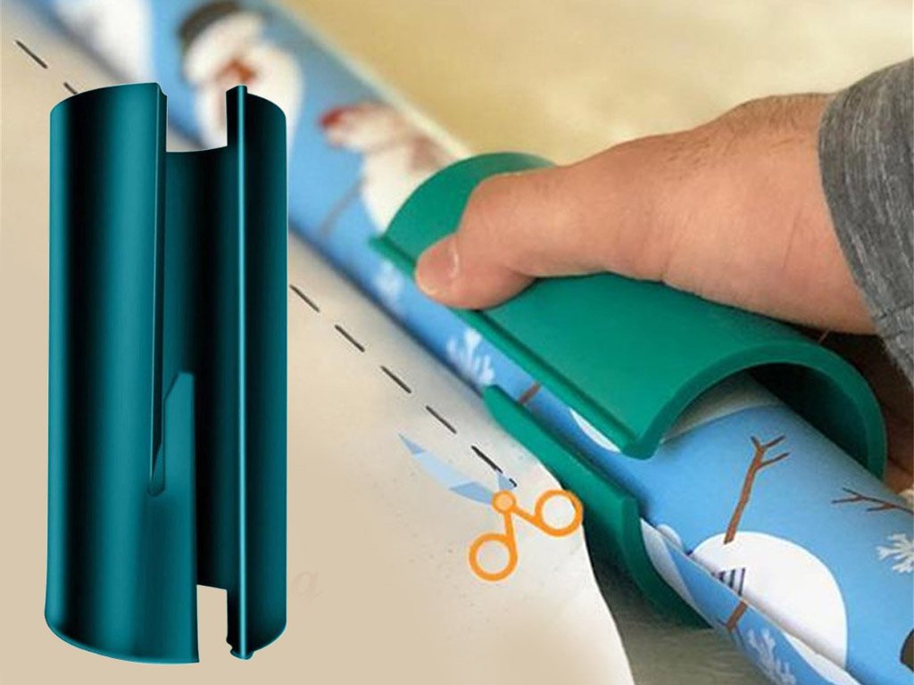 A cutter in the form of a roller for rolls of wrapping paper. Simply thread the roll of paper through the cutter, unwind as much paper as you need, and easily separate it. A simple helper when wrapping gifts that saves you time from awkwardly cutting with scissors.