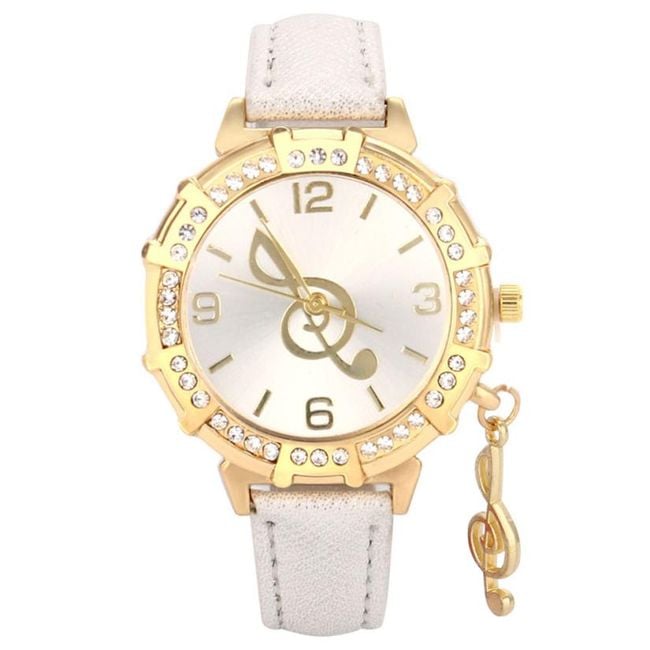 The ladies' watch features a treble clef depicted on the dial. It is also present as a small pendant.