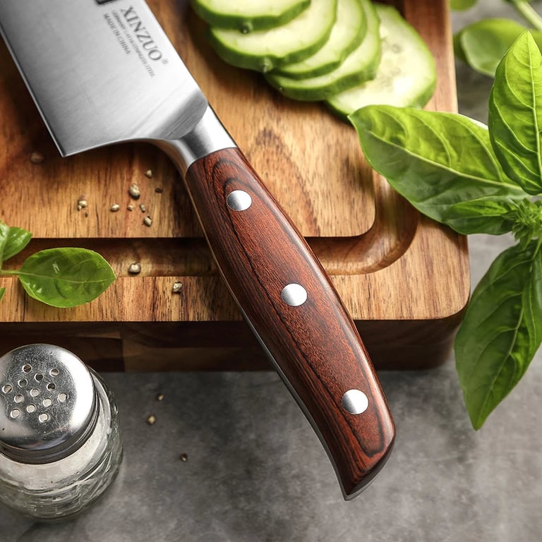 XINZUO kitchen knives combine precise craftsmanship, a sharp blade and elegant design. The blade is made from German stainless steel, renowned for its high resistance to corrosion and wear.
