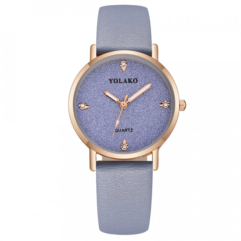 Women's watch with a gold-coloured dial adorned with subtle stones. Leather-look strap. Available in several colour options.